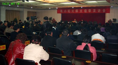 3月10晚8点,陈小旺大师太极拳演讲会在温县天天大酒店五楼会议厅举行,本次演讲会由温县太极拳研究发展中心组织举办。温县籍拳师和来自世界各地的太极拳爱好者共100多人聆听了陈小旺先生的演讲,陈小旺先生就当前太极拳在国际上的演练形式和发展趋势、太极拳习练过程中对人身体和心理平衡所起的作用、太极拳的文化内涵、阴阳平衡和太极拳的关系、太极拳演练与书法的关系以及他在国外授拳的基本情况做了详细阐述。本站全程录像,录像将在近期发布。