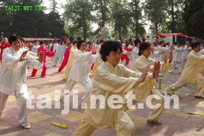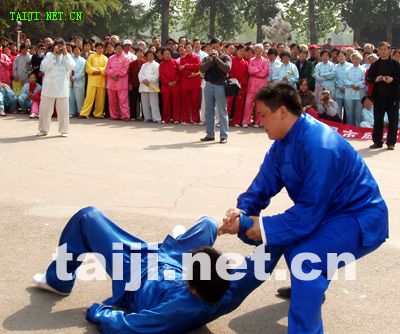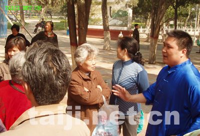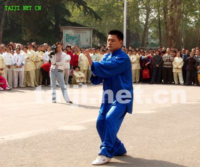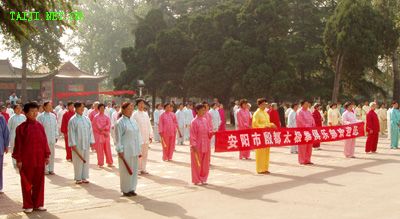 | 4月20日,由陈家沟老村长和中国陈家沟太极拳推广中心秘书长原福全先生带领,陈家沟当代太极拳名师陈大虎、陈冲、陈二虎、陈志强以及学生一行11人在参加完2006永年广府第三届太极拳年会拳技大赛之后,应安阳殷都太极拳俱乐部之邀,在安阳市网通公司和人民公园与当地太极拳爱好者进行了友好交流。安阳市体育局副局长侯燕民、体育总会办公室主任梁女士出席了交流活动,并作重要讲话,提出两地以后要互相往来、交流学习、共谋发展,大力弘扬太极文化。陈家沟陈冲、陈志强、陈大虎、陈二虎分别表演了传统的太极拳小架、老架、新架、二路炮捶以及太极推手,原汁原味的太极拳表演,引起了现场观众阵阵热烈的掌声。安阳电视台、安阳日报、东方今报等媒体也对此次交流活动进行了报道。 据俱乐部主任史晓明先生介绍:安阳市殷都太极拳俱乐部成立于2001年8月15日,现有会员1300余人。成立以来,先后应邀参加了多次国际和国内太极拳大赛并取得了骄人的成绩,共获金牌13枚银牌9枚。俱乐部创编的太极球和太极鸳鸯球套路在太极拳界引起了强烈的震撼,《中华武术》、《武林》、《少林与太极》、《中国新闻》等杂志和《香港商报》、〈广东卫视台〉、〈湖北卫视台〉、《中国新闻网》、〈太极网〉等媒体都做了报道和评述。