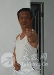 综合试验一:原地崩拳(1)或称原地出拳、原地打拳张烈 我们曾做过几种试验,现在将其结合起来,初步体会一下什么是内家拳的“整”。所谓“整”,你可以理解为整体、整齐、谐调一致。我们先做出拳的分解试验。(以下配图拍摄机位过低,不能完全正确表达手臂水平高度,仅供参考 编者注) 开始两臂自然弯曲着,要放松,贴着身体,两手自然握拳放在肚脐两旁。  若出左拳,先将左拳贴着身子微向上提起,然后将拳向自己的正前方打出。所谓正前方就是你鼻子尖向前延长的方向。  打出的臂要垂肩坠肘,拳与心口窝等高。把拳打到位时,小臂基本上是水平的,整个胳膊有些弯曲,胳膊窝朝上,拳眼(虎口)朝上,应特别注意是手背要与小臂成一条直线,即手腕不可向里或向外弯曲,使拳和小臂有一种立柱顶千斤的感觉。这样当你打击到目标时你的手腕不容易受伤害。另外应注意在向前出拳的同时协调地向前松肩,参考以前试验过的垂肩和含胸。  练好出左拳,再继续练出右拳。应注意的是以前各个动作是单个的、分解着做的,而现在要统一起来,协调起来。这一个出拳包含着几个相关的内容。(虚领顶劲、垂肩坠肘、含胸拨背、肩胯相合,编者注)
