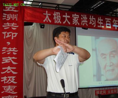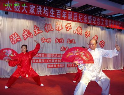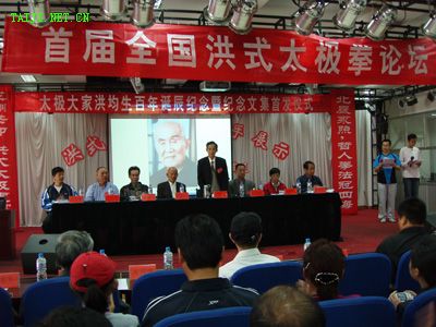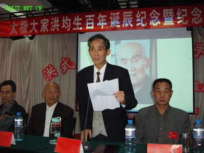 2006年5月6号,太极拳大家洪均生先生诞辰100周年纪念活动暨首届全国洪式太极论坛在山东省荷泽市荷泽学院召开。本次活动由国际洪式太极拳推广中心总会主办,菏泽市体育局、菏泽市武术协会、国际中国功夫总会、香港《中国功夫》、《武魂》、《武林》杂志社、《洪式太极网》、《太极网》、《博武网》协办。缅怀一代太极宗师洪均生公,推广弘扬其武学思想、展示其传人风采是本次大会的主题。洪先生的大弟子何淑淦、徐州的太极名家蒋家骏、济南刘秀文、张光宗、徐州李庆佳、泰安刘维国、少林的朱天喜大师、河南省武术协会副秘书长、中国陈家沟太极拳推广中心秘书长原福全先生、中国温县陈家沟村民委员会主任、中国温县陈家沟太极拳总会会长张蔚珍先生、陈家沟太极拳研究会会长兼总教练陈氏十九代传人陈志强先生、中国温县陈家沟村民委员会支书陈皂罗先生、陈式太极名家陈骁五先生及太极网张金鹏先生、《中国功夫》的主编梁伟明先生作为特邀嘉宾以及全国各地洪式太极传人共100余人参加了此次活动。