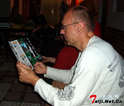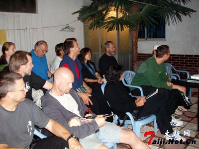 8月31日,德国武术代表团一行30余人在参观了陈家沟之后,晚上7点,拜访了刚从德国教拳归来的陈式太极拳传人、“双剑女皇”陈桂珍老师。陈老师在温县县城自己家中接待了这些学生和朋友,老朋友相见,分外亲热,在热情友好的气氛中,大家就练习太极拳中遇到的问题向陈老师提问,陈老师通过翻译和手语,向大家一一解答。