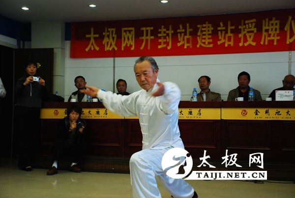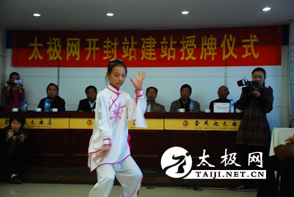 太极网总经理刘洪奇最后在致辞中说,再有几天,太极网即将迎来他的十二岁生日,太极网从一台主机、一根电话线开始,到现在拥有多台专用服务器,成为太极拳界功能最全、内容最丰富、信息最及时的专业门户网站,得益于她扎根太极拳发源地的这片文化底蕴深厚的土壤,得益于千千万万太极拳传承人、爱好者的厚爱和支持,才使太极网能够走到今天。在开封这片同样有着深厚人文气息的历史文化名城,太极网在这里生根发芽! 开封是一个包容的、文化多元的城市,武术文化氛围浓厚,尤其是太极拳,陈、杨、武、吴、孙、和几大流派在这里处处都可以看到习练者的英姿。开封像范鸿信老先生这样的太极拳优秀传承人,为太极拳的普及和发展做出来卓越的贡献,为民族传统文化的传承默默奉献,特别值得我们敬重和学习。范鸿信老师支持他的弟子和再传弟子到陈家沟去,到太极拳发源地去,学习和交流,也将为两地的太极拳的发展注入新的活力,这是目前很多拳师做不到的,这是一种博大的胸怀,太极拳的发展需要这种开放的、包容的思想。 太极网在开封设立分站,为太极拳爱好者搭建一个交流的平台,促进开封太极文化的普及和发展,让更多的人加入到习练太极拳的队伍当中,都将起到积极的推动作用。太极网有幸承担了温县县委、温县人民政府实施的中华太极拳传承谱系工程,该工程就是为太极拳书史,为传承人立传,开封分站的设立也将加快开封地区太极拳传承人的信息采集和编纂入库工作。太极网开封分站在今后的工作中,一定会为促进开封和陈家沟,开封和其他地区的太极文化交流提供更多的机会和平台,提供更加丰富的文化产品,为古都开封的太极文化建设谱写新的篇章! 授牌仪式最后,开封当地和来自太极拳发源地的拳师相互做了交流表演,开封的贺云飞、周元睿、苏雨宏和范鸿信老师为大家做了精彩表演。来自温县王西安拳法研究会的小明星李京京、张焱杰联袂表演了组合套路,赢得阵阵掌声,特别是陈素英老师的表演浑厚大气,让开封的太极拳爱好者一饱眼福。开封当地的主流媒体《汴梁晚报》、《开封电视台》对会议进行了全程采访。 |