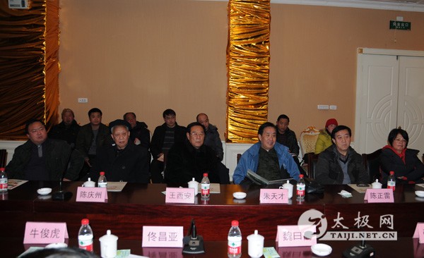 2月15号下午,温县召开新春拳师座谈会。县领导魏曰高、李英杰、牛俊虎、郑小林、魏大海、霍晓丽与太极拳大师陈正雷、朱天才、王西安、陈庆州、陈小星、陈照森、陈伯祥、和有禄等全县一百多位拳师欢聚一堂,围绕如何做大做强太极拳事业这一议题展开座谈。河南省体育局原局长、省武术协会主席张振河、省陈式太极拳协会副主席佟昌亚、省武术运动管理中心主任助理陈沛菊、焦作市体育局副局长李立、原温县政协主席史绍文出席座谈会。 近年来,温县以陈家沟建设为重点,不断加大太极拳开发力度,完成了《陈家沟太极拳文化旅游产业园区总体规划》编制,建成了太极拳祖祠、祖林、文化园、博物馆等景点,引进了总投资20亿元的太极拳开发项目,并被确定为省重点项目,陈式太极拳被列为首批国家级非物质文化遗产,温县被命名为“中国武术太极拳发源地”、“中国太极拳发源地”和“中国太极拳文化研究基地”。