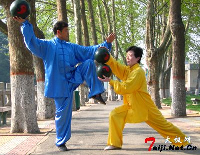 太极球功法是太极拳体系里一个重要的组成部分,是太极内功修炼的高层功夫,历代太极拳高手对此功法都是喜爱备至并且苦练不辍,长期以来其功法套路和秘诀承传隐秘、更是不肯轻易示人,如今能真正了解和掌握太极球功法的人寥寥无几。 长期以来,太极球功法被人为地披上了神秘的面纱,使许多太极拳爱好者可望而不可知,著名武术家安阳市殷都太极拳俱乐部总教练史晓明先生在传统太极球基础上,在太极理论的指导下,经过多年的苦心研习、领悟创编的太极球功法和套路,揭开了太极球的神秘面纱,《太极球》教学光盘一经推出倍受太极拳爱好者和专家的青睐,史晓明先生用最简练朴实的语言在中华文明的发祥地殷墟用90分钟时间向大家完整的讲述了《太极球》的基本功法和套路,使人一目了然。他的讲述使人顿开茅塞,他在中华文明的发祥地殷墟的演练,给人一种天人和一的美,给人一种气势磅礴的感觉,给人许多联想和启发。 史晓明先生演练的《太极球》在国内、国际太极拳交流比赛中,多次获个人表演和短器械类金牌,是目前国内太极球功法的重要传人之一。在第七回世界易经大会上,,他深厚的功力和娴熟的技艺,使参会代表真正感受到了太极拳形的飘逸,力的风采,健的英姿,神的韵味。被中外参会代表誉为“太极娇子”。 《中华武术》、《武林》、《少林与太极》、《中国新闻》、《安阳日报》、《香港商报》等杂志和《中央电视台》、《广东卫视台》、《河南卫视台》、《珠海电视台》、《山东电视台》《湖北电视台》、《太极网》、《博武网》等媒体都对他做了多次报道和评述。 为了完整的挖掘、研究、整理这套功法,近年来史晓明先生走了许多地方,拜访了很多名家高手,在传统太极球的基础上,在太极理论的指导下,根据健身性、欣赏性、普及性3条原则,创编了《太极球》、《太极鸳鸯球》、《双人太极球》3个套路和《太极球基本功法》,受到了海内外广大太极拳爱好者和专家的关注。