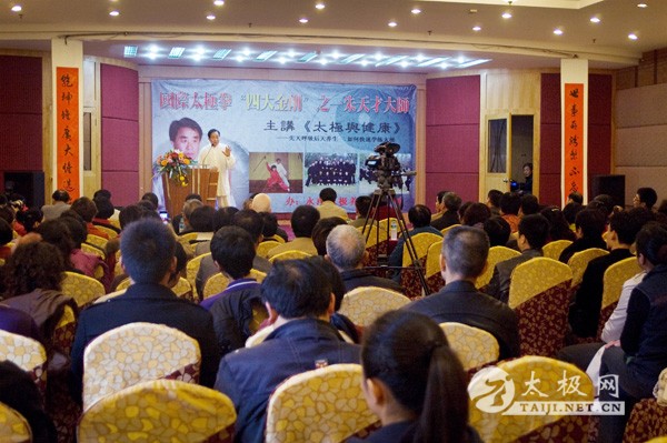 赣州劲吹太极风 ——赣州市举办朱天才大师太极拳讲座和太极拳名师吴永萍收徒等系列活动 本网记者溯源报道:3月的赣州,春风化雨。在这春雨滋润万物复苏的季节,赣州市刮起了一股太极拳的暖风。国际太极拳大师朱天才的《太极与健康》的讲座在这里举行。先行助兴的是他的高徒吴永萍的收徒仪式。这一系列太极拳活动的进行,掀起了赣州太极拳之浪的新的浪花。“章”“贡”为赣,赣州市唯一一个区——章贡区的区长廖长荣,在百忙中委托副区长 陈昌立主持了朱大师的讲座;江西省政协常委万华亮和朱大师一起,参加了吴永萍老师的收徒仪式,并做了仪式的见证人。 参加朱大师讲座的有赣州市永萍太极养生俱乐部所在区的领导和来自赣州周边地区的有关领导及太极拳同仁。 在一片掌声中,朱天才大师进行了近三个小时的演讲,他深入浅出、通俗易懂的讲演和精彩的太极拳展示,使与会的领导和太极拳爱好者享受了听觉和视觉的一顿文化大餐,使大家进一步加深了对太极拳的认识和了解,对赣州市以太极拳为主要内容的全民健身运动的发展,将起到积极的推动作用。赣州市的各级领导,重视和支持太极拳事业在当地的发展,赣州今年将要承办江西省第十四届全运会,为迎接这个盛会,他们很注重被称为人类最佳的健身运动的太极拳活动的开展,当地政府部门的领导,除了出席赣州这次太极拳的系列活动外,还隆重招待了来自各地参加本次活动的太极拳朋友。赣州市当地领导对太极拳运动的重视和当地太极拳发展的氛围与现状,令所有参与活动的人都很有感触。 被当地尊崇为太极拳大师的吴永萍,从师陈式太极拳大师朱天才和杨式太极拳名家王庆钰,是近年来从赣州地区冲向太极拳界的一匹黑马。多年来,她刻苦专研太极拳的理论和教学方法,在太极拳的海洋中拼搏遨游,总结出了一些新颖的太极拳的教学方法,深受当地太极拳爱好者的欢迎。她多次应邀到国内外讲学教拳,为中华国粹——太极拳的传播做出了重要贡献。这次,她接收的13位弟子,均是各地在企业界和其它事业中事业有成的精英人物,她的收徒,标志着太极拳的代代传承与发展。收徒仪式前,来自各地的太极拳朋友与赣州永萍太极养生俱乐部的会员,分别进行了精彩的太极拳表演。当地政府部门的领导,分别参加了以上系列活动,我们相信,有当地领导对太极拳事业的关注与支持,经过赣州广大太极拳同仁的努力,赣州的太极拳事业一定会得到如日中天的发展。 |