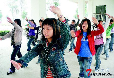 金华职业技术学院校园里,50多名女大学生在寒风中伸腿展臂,像模像样地跟着武术教师学习24式太极拳。 女生们所练的太极拳,动作虚中有实,刚柔相济,是根据高等学校普通体育课教学大纲规定的内容选编的,对运动技术进行了简化和重组,并在此基础上补充了适宜的内容,满足了大学生特别是女生冬天身体素质锻炼的需要。 |