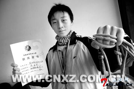 在刚刚结束的第三届全国武术功力大赛上,我市17岁小伙徐经营在“流星打靶”传统武术功法项目比赛中勇夺冠军。徐经营目前在徐州师范大学体育学院民族传统专业学习。 昨日上午,记者见到了刚刚凯旋的徐经营,他给记者的第一感觉就是“精神”。他向记者展示了刚刚获得的冠军金牌和证书。他告诉记者,第一次参加全国性大赛就获得冠军,心里非常高兴,这也证明自己多年的苦练没有白费。徐经营的师傅陈先生告诉记者,徐经营习武天赋极高,从10岁开始就跟随他练习双绳标,双绳标是民族传统兵器中的软兵器,由于练习难度大,很多习武之人都选择刀、剑等兵器,而很少有选择软兵器的,而双绳标更是软兵器中的至柔武器,对练习者身体素质和聪明程度都有要求,练习该软兵器时必须身体和大小脑协调一致,否则很容易伤到自己。 陈先生说,徐经营参加的比赛项目是“流星打靶”,也就是用双绳标去击靶点,主要检验参赛选手的准确性,这点和射击有点相似。“流星打靶”分三个动作,第一种是缠胳膊肘,即将双绳标缠绕在胳膊肘后奋力抛出;第二种是背后打标,即将双绳标缠绕在背部,然后用背部力量将标发出去;第三种则为脚部缠标,用脚踢出去,这就需要考验选手的脚部力量。徐经营这几个动作练习得非常到位,在比赛中正常发挥,一举夺得全国冠军。 |