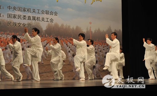 会上,中国武术传统的陈氏、杨氏、孙氏、吴氏、武氏太极拳及东岳太极拳大师做了表演,国家民委、外交部、中科院、社科院、卫生部和中央国家机关6支太极拳代表队陆续登台进行了精彩的汇报表演,赢得了现场观众的阵阵掌声。