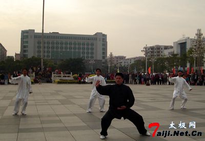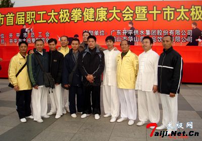 为了迎接和支持2008年北京奥运会的到来,提高职工身体素质,1月7日下午,由开平市总工会主办,开平市太极拳联谊会协办的开平市首届职工太极拳健康大会暨十市太极拳精英大汇演在开平市城市广场北广场举行。这是在开平举行的一次大型体育文化交流活动,开平市领导黄继烨、司徒尧滚、黄婉慈、余明达以及 陈家沟太极拳研究会会长、“八大天王”之一陈志强先生和来自广州、东莞、阳江、肇庆、江门等十市(区)的太极拳精英爱好者参加了这次盛会。