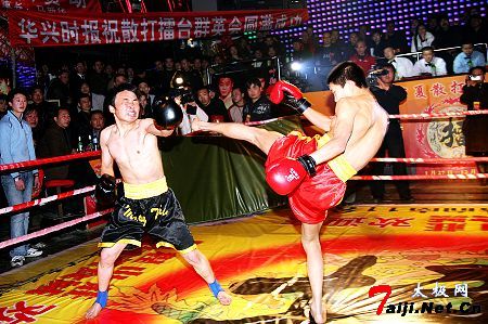 2月27日,由本报与银川市体育局、银川市武术协会联合主办的“2007宁夏散打擂台群英会”正式开战。当晚,参加首轮比赛的8位选手,经过激烈的角逐,最终决出2名胜者进入月冠军争夺赛。 比赛现场吸引了众多的观众,一些“粉丝”们则手举选手的大幅图片,高声呼喊,为支持的选手加油。来自我区的18岁小将“霹雳小子”郭毅,虽然身材不够高大,可是其灵活的动作和熟练的技巧,让他在赛场上大展雄风,前后战胜2名对手,昂首晋级。19岁的叶翔,从师少林,在场上始终能争取主动,且从容应对、不急不躁,他精彩的腿功赢得了人们热烈的掌声,叶翔最终获得本周擂主称号,并将与郭毅一起参加下月底举行的月冠军比赛。 据银川市散打委员会有关负责人马春华介绍,目前本次活动已吸引了300多名散打爱好者报名参加,其中年龄最大的有40多岁。银川市武术协会主席关振和说:“我们欢迎各界人士对此项活动进行支持,也欢迎大家积极报名参加,但散打运动是一项激烈的身体对抗运动,报名者应尽可能多的考虑自己的身体承受能力。举办散打擂台比赛,旨在传承中国武术的精髓,宏扬中华民族的传统文化,希望喜欢这项运动的年轻人,能够从比赛中学到勇敢进取的精神和不畏艰险的勇气,在强身健体中领略正确的人生真谛。”