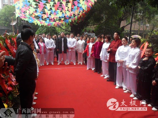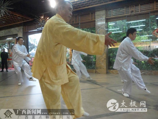 严翰秀总教练率队表演太极拳 2012年12月29日上午,广西盛天太极拳俱乐部、广西太极拳学会揭牌仪式在南宁青秀区盛天茗城举行。仪式上,杨澄甫式太极拳第五代传人严翰秀带领太极拳俱乐部成员进行了精彩的太极拳表演,引来与会嘉宾和观众的喝彩。 太极拳练习,能促进人体的气血运行,提高人的健康水平,这已为太极拳历史所证明。盛天集团董事长林炳东从小喜欢习武,为了创建和谐、健康、文明的盛天社区,他提出了“把健康送给社区业主”的口号,于2006年创立了盛天太极拳俱乐部,聘请了资深太极拳大师,杨澄甫式太极拳第五代传人严翰秀先生为总教练。2012年春,盛天太极拳俱乐部正式进行了登记注册。 据了解,自2006年以来,盛天太极拳俱乐部参加了30多项太极拳活动,如与澳门无极气功保健研究会共同举办了“太极拳与养生论坛”、中国(南宁)-东盟武术节等有力地推动了盛天社区太极拳的普及。这几年来,盛天太极拳俱乐部队伍逐渐扩大,成员来自五湖四海,形成了比较成熟的节目表演套路。 记者了解到,本着“把健康送给业主”的理念,凡是盛天社区的业主或者居住在盛天社区的居民都可以免费学习太极拳,目前在盛天社区参加太极拳学习的已经有近两千人。对于周边其他社区的群众,只要到盛天社区物业报名,同样可以享受免费教学。 严翰秀总教练说:“经过几年的太极拳练习,业主的身体健康会有不同程度的改观。比如在颈椎、腰腿、肠胃、失眠、心血管、高血压等方面有问题的业主,坚持练习太极拳,都有所改善。”住在盛天熙园的黄奶奶非常喜欢太极拳,她笑容满面地告诉记者:“我加入这个俱乐部2年多了,每次有活动都参加。我原来有高血压,现在已经正常了,肾积水也消除了。” 严翰秀说,由于俱乐部的研究条件有限,对于太极拳的健身功效还不能作出深入、科学的解释,因此,学会接下来的计划是与医疗等相关专业单位联合进行研究,期望能在太极拳科学研究方面有所探讨和总结。 严翰秀总教和成员们 揭牌仪式现场 |
