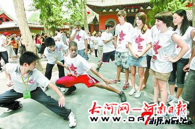新华网河南频道7月19日讯 大河网—河南商报报道:7月18日,来自美、英、韩等国的200多名青少年学生,在河南体会汉语课教学,体验中国传统文化。