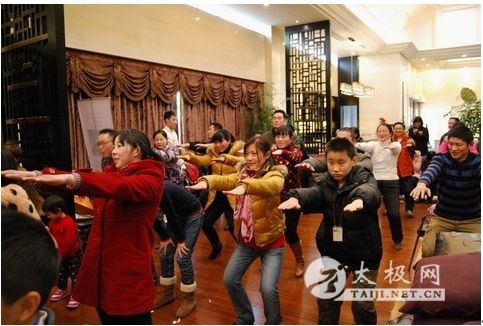 南京易太极中华文化体验活动 2013年新年伊始,一群活泼可爱的小学生在家长的陪同下,来到易太极南京精粹会所体悟传统文化,分享太极、共享健康,欢度元旦。 最近社会上频繁出现的中小学生跑步猝死和身心健康问题,成为了家长们关心的头等大事。因此,如何让孩子们保持良好学习成绩的同时又能让他们健康快乐地成长显得尤为重要。 围绕这个话题,易太极首席讲师张群鑫老师与到场的80多名家长和孩子们交流了太极拳能给家庭带来的好处,以及家庭教育和生活中如何运用太极文化和科学准确的太极拳在改善健康方面的良好效果。通过简单的现场调查后发现,家长和孩子们都有巨大的身心压力、睡觉晚和运动少的情况已经充斥整个家庭,大人小孩的亚健康状况已经旗鼓相当。大家都深刻感觉到了“健康是一种责任”的重要性。 易太极教练在表演练十三式太极拳 易太极南京馆的会员向大家分享自己练拳的心得 来自易太极南京会所会员季总的学拳感受让大家跃跃欲试,非常想知道季总说的易太极这里能让大家清晰明白“阴阳之理”和“差之毫厘谬之千里”在太极拳里具体是怎么体现的。从大家的表情中能出大家的疑问:“易太极真有你说的那么神吗? 台下的“易家人”看到这么神奇的一幕惊呼“不可思议” 随后,张群鑫老师请上来了四位家长及一位学生,让大家切身体验一下易太极的差之毫厘谬之千里的神奇和教学方法的科学性。通过台上家长代表和学生们的体验,易太极标准化的教学和科学的检验彻底改变了大家对太极拳的看法,一位家长说,“本以为太极拳就是公园里老人打的,没想到这么神奇,易太极科学标准,是真正的太极拳”。上图中体验的先生更是现场表示“未来的我会感谢今天的我来到了易太极!”。 小朋友在感受开步中的阴阳之理 家长和小朋友们一起练拳,其乐融融