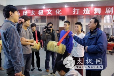 今年注定是河南歌舞演艺集团最忙的一年。该集团历史上最重要的两部原创作品舞剧《太极传奇》和交响乐版《朝阳沟》同时进入首演倒计时阶段。日前,这两部作品先后向媒体开放,记者提前一睹芳容。 舞剧《太极传奇》:大手笔大制作 震耳欲聋的鼓声敲得人热血沸腾。在一片叫好声中,陈云天、蒋龙飞两位武林高手垫步踏上擂台,二人怒目凝视,伸掌便劈,生死决斗就此拉开。打斗正酣之时,蒋龙飞的利剑却无情地刺入女主角叠彩的胸膛…… 河南歌舞演艺集团董事长周虹现场指导 总导演陈维亚向媒体介绍相关情况 这是记者1月10日在河南歌舞演艺集团排练厅看到的《太极传奇》最高潮部分第四幕“比武”。9天后,该剧将在河南艺术中心大剧院正式公演。 酝酿4年之久,投资1000多万元的大型原创舞剧《太极传奇》以焦作陈家沟陈氏和蒋氏两个家族的恩怨情仇为主线,采用“舞+武”的呈现方式,表现太极世界的神秘和太极理念。 封闭排练期间,总导演陈维亚的团队和70多位舞蹈演员一起,以排练厅为家,每天工作14个小时以上。陈维亚说,“大家都是带着朝圣的心态来打磨《太极传奇》的。”河南歌舞演艺集团董事长周虹说,《太极传奇》是省委宣传部和省文化厅全力打造的重点剧目,展现了博大精深的中原文化和积极向上的民族精神。
