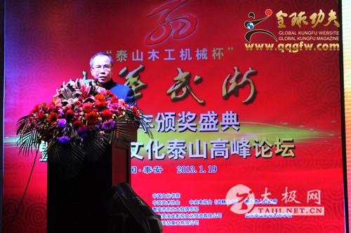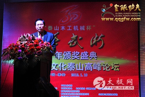 2013年1月19日晚8点整,《中华武术》三十年颁奖盛典在山东省泰安市东尊华美达大酒店隆重举行。此次颁奖盛典是由中国体育报业总社和中国文化书院主办,《中华武术》杂志、泰安市东方太极俱乐部承办,国家体育总局武术运动管理中心和中国武术协会作为支持单位,泰安市泰山木工机械有限公司、山东东方重型锻压有限公司、青岛圣宝龙影视文化投资有限公司、泰安市泰山影视艺术学校、山东华岳煤矿装备有限公司、山东天亿重工有限公司协办。 国家武术运动管理中心主任、中国武协主席高小军宣布颁奖盛典开幕 出席本次盛典的领导与嘉宾有:国家体育总局武术运动管理中心主任、中国武协主席高小军,中国体育报业总社社长涂晓东,山东省体育总会专职副主席徐大义,泰安市政府副市长徐恩虎,山东省武术院院长胡杰,山东省武术院书记翟寿涛,泰安市体育局局长苏有森。特邀嘉宾有:原中国武术院院长、著名武术家蔡龙云,《中华武术》杂志第一任主编、创始人昌沧,原中国武协副主席张山,北京电影学院院长张会军,中国武术研究院专家江百龙,中国武术研究院专家陈顺安,全国人大代表、少林寺方丈、中国佛教协会副会长释永信,中国武术研究院专家、十大武术名师梁以全,全国政协委员、宋江武校校长樊庆斌,中国电影表演艺术学会会长、著名演员唐国强,杨式太极拳名家、中国武术院专家杨振铎,陈式太极拳名家陈小旺,中国当代十大武术教练曾乃梁,螳螂拳名家、著名影视演员于海,中国人民大学教授、太极拳著名传人李德印,梅花桩拳传人、中国人民公安大学高级教官韩建中,陈式太极拳名家王西安,开门八极拳名家吴连枝,八极拳名家王世泉,杨式太极拳名家傅声远,杨式太极拳名家崔仲三,北京电影学院副院长王鸿海,著名电影导演何平,著名画家、太极拳著名传人梅墨生,著名艺术史论家刘传铭,《中华武术》杂志主编李平,莱州中华武校校长李明智,中国当代十大武星赵长军,著名影视演员臧金生,超级散打王、影视演员柳海龙等。 国家武术运动管理中心主任、中国武协主席高小军宣布颁奖盛典开幕。泰安市副市长徐恩虎,中国体育报业总社社长涂晓东分别致欢迎辞和答谢词,对四方豪杰齐聚华夏圣地——泰安表示热烈欢迎。《中华武术》30年颁奖盛典中,荣获殊荣的人物、流派、栏目有: 30年杂志最具影响力文章——田江(文章:访许世友将军) 30年最具影响力见义勇为奖——丁曙光 30年最具影响力武术著作 ——《中国武术大典》、《中国武术史》《太极拳运动》 30年最具影响力武术电视栏目 ——《武林大会》、《武林风》、《中华武术》 30年最具影响力武术电影 ——《少林寺》、《一代宗师》 30年最具创意武侠电影导演——何平 30年最具影响力武术馆校——北京少林武术学校、河南少林塔沟武校、湖州清泉武校、泉州南少林武校 30年最具传承力武术拳种——陕西红拳 30年地方拳种最热心传承人——谭强 30年最具影响力学术教育类人物——蔡龙云 30年最具社会贡献奖——扎西、李德印、霍震寰、释永信 30年最具影响力武术馆校类——樊庆斌、李明治 30年最具传统武术类人物——陈昌棉、马振邦、梁以全、张希贵、韩建中、于海、吴连枝 30年最具影响力竞技武术类人物——吴彬、庞林太、曾乃梁、赵长军、柳海龙 30年最具影响力传统武术太极拳类人物——杨振铎、李秉慈、傅声远、王西安、陈小旺、崔仲三、陈正雷 30年最具影视文学类人物——金庸、徐克、成龙、李连杰 30年最具影响力终身成就奖——徐才、昌沧 最具企业贡献奖——杜广智 泰安市副市长徐恩虎致欢迎辞 中国体育报业总社社长涂晓东致辞