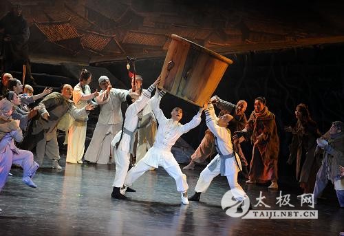 1月19日,演员在原创舞剧《太极传奇》中表演。 1月19日,大型原创舞剧《太极传奇》在河南艺术中心大剧院首演。《太极传奇》以河南焦作陈家沟陈氏太极拳创始人陈王廷传奇的经历和近四百年来陈氏太极拳的传承和普及为历史背景,讲述了太极拳掌门人陈云天与武状元蒋龙飞之妹叠彩的生死之恋以及陈、蒋两大家族经历爱与恨、生与死的洗礼和大彻大悟,从而达到水火相生、阴阳相融、和谐太极之境界的故事。新华社记者 李博 摄 1月19日,演员在原创舞剧《太极传奇》中表演。新华社记者 李博 摄 |