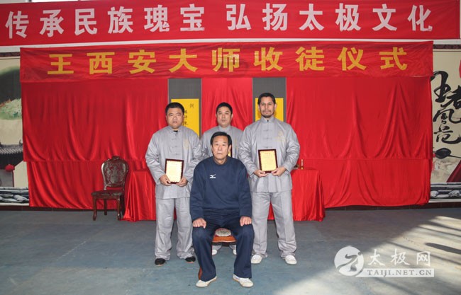 1月24日,首批国家级非物质文化遗产陈式太极拳传承人、国家武术高级教练王西安大师在温县太极武术馆训练厅举行隆重的收徒仪式。温县政协副主席严双军,温县陈家沟景区管理局局长职毅,温县体育局副局长牛化平,温县文化馆馆长闫忙种、太极拳传承人联合会主席刘洪奇等领导嘉宾欢聚于此,共同见证三位新入室弟子的拜师仪式。这三位新弟子分别是来自浙江苍南的陈德法和陈明枣,以及来自秘鲁的王保罗。 在拜师仪式上,王西安大师首先向武神关公和太极拳祖师陈王廷上香、行叩拜礼。随后,三名弟子分别向恩师递交拜师贴、行拜师大礼。王西安大师向新入门的弟子颁发传承书、授弟子服。最后,王西安大师训示新入室子弟,告诫弟子要遵守门规师训。 王西安大师是当代陈氏太极拳代表人物,声名遐迩,是享誉世界的太极拳王。多年来,他殚精竭虑,身体力行,潜心致力于太极拳的传承和弘扬。他是第一个应邀出国传授陈式太极拳的大师;是第一个将陈式太极拳传播到日本、推广到欧洲各国乃至全世界的大师。在此次新收的三位弟子中,就有一位来自南美洲秘鲁。王西安大师为太极拳的传播、发展与推广做出了巨大贡献。 南美洲与我们的距离虽然遥远,但是这并没有阻碍太极拳的传播。2005年秘鲁就已成立拉丁美洲陈式太极拳协会,并与“世界太极拳日”举办各类活动向秘鲁众推荐中国正宗的太极武术。 |