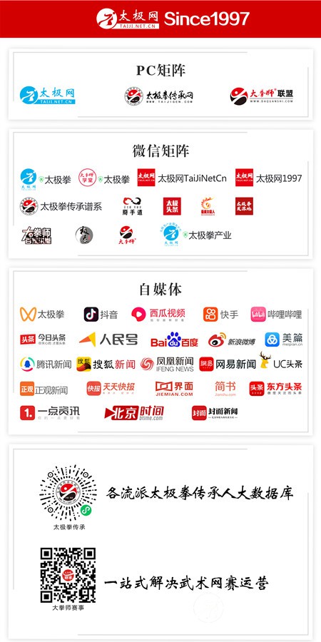 太极网微信矩阵粉丝数百万,官微“太极拳”,每日更新太极拳资讯、文章、视频。