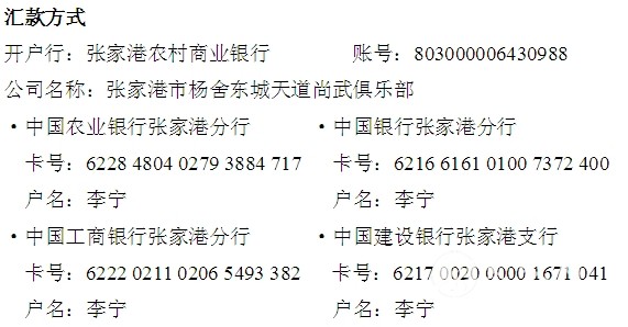五大活动 1. 全国武术沙龙研讨活动 特邀国内武术名家开设专题讲座,与各路武林同仁研讨中华武道文化。 2. 全国武术界书画影作品联展 征集国内武术界人士的书法、绘画、摄影作品,举办中华武道为主题的书画影作品联展。 3. 全国知名武术社馆50家及武林精英50名评选活动 从各地报名参赛的武术社馆中,组委会组织评选有影响力的50家知名武术社馆,并颁发铭牌。各代表队推荐一名武林精英,大会评选出具有影响力的50名,并颁发铭牌。 4. 全国文明城市张家港文化旅游活动(免费) 组委会免费为各参赛队提供在全国著名文明城市张家港的文化旅游活动。 5. 江南景点游(自费) 为丰富参赛人员赛事活动,组委会将联合旅行社,另推出江南景点游。 其他规定 1.参赛运动员请自行办理好“人身意外伤害保险”。参加大会的所有人员发生任何意外、疾病事故与大会无关。 2.申诉处理:如参赛队伍对比赛结果有异议,须在该场比赛结束后10分钟内,由领队或教练(其他人不得干涉或者妨碍比赛的进行),按照仲裁条列将书面申请材料连同申诉费1000元交仲裁委员会,如败诉,申诉费不予退还,胜诉退还百分之五十。 主办单位: |