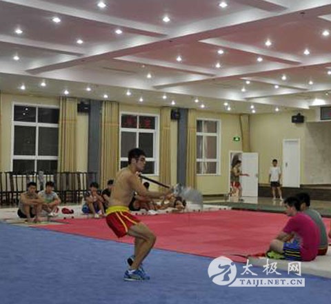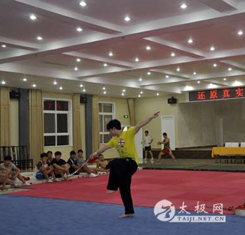 央视“武林大会走进太极拳发源地陈家沟”活动参赛队员已经集中训练半个多月的时间,运动员每天重复同样的动作,消耗了大量的体能。离总决赛的时间日益临近,如此高强度的训练和高规格的要求,使队员们显得有些疲惫。