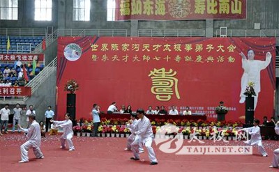 出席会议的领导与嘉宾 8月16日,“四大金刚”之一、国家级非物质文化遗产项目——陈式太极拳代表性传承人朱天才大师全球弟子大会暨朱天才大师七十寿诞庆典活动在温县陈家沟太极拳国际交流中心演武厅拉开序幕。 大会由世界天才陈家沟太极拳总会主办,中国陈家沟天才太极院、焦作市温县体育局承办,为期四天,由开幕式、竞赛、生日宴会、祭祖、收徒等系列活动组成。世界天才陈家沟太极拳总会所属的分会、研究会、培训机构以及朱天才大师的全球弟子共400余人纷纷赶到陈家沟参与大会,并恭祝朱天才大师七十大寿。 简短的开幕式后,比赛正式开始,来自世界各地的太极拳爱好者都努力地展现着太极拳的风采。这既是一次学习成果的汇报,更是一个太极拳经验交流的良机。 朱天才,温县陈家沟人,大学文化程度,1944年7月25日出生,陈家沟陈氏第十九代外孙,陈氏太极拳第十九代传人,陈家沟太极拳“四大金刚”之一。系温县武协理事、太极拳研究主任、太极拳专修院院长、焦作市优秀科技人才、国家高级武术教练、国家一级裁判。为弘扬太极,培养国内外弟子数以万计,被誉为“国际太极拳教”、“新加坡陈氏太极开山人”、“陈氏太极拳在韩国第一代传人”。朱天才拳艺精湛、文武兼备、德高望重,被国内外二十多个国家及地区的一些武术协会和高等院校武馆聘为顾问和名誉教授,曾任四届温县政协副主席、焦作市人大常委会常委委员。 |