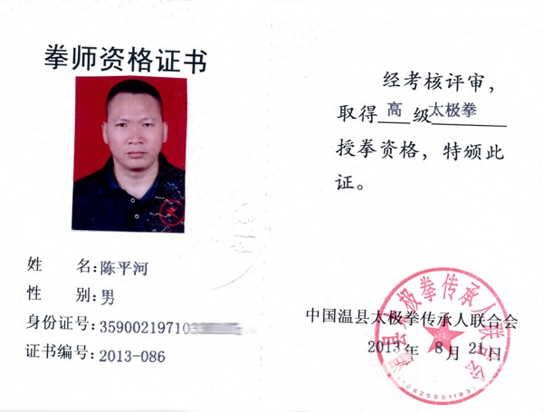 陈平河,师承王西安大师,陈式太极拳第十二代传人