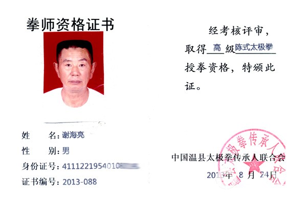 谢海亮,陈志强弟子,陈式太极拳第十三代传人