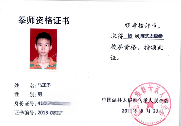 马正予,师承陈长虹,陈式太极拳第十一代传人