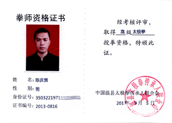 陈庆贤,师承冯建军,陈式太极拳第十三代传人。