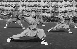 首届中原武术庙会于农历正月初十在万岁山度假区启幕,庙会上的武术样式很多,不过要说到精彩应首推来自登封少林寺的两家武校的少林功夫表演。60多岁的郭先生在观看表演后连声赞叹:“好?真实、生动,不愧为少林弟子。” 每当有少林功夫表演的时候,游客们就自觉停住了脚步,其他人则“呼朋唤友”吆喝着把表演台围个里三层外三层。一个七八岁的小朋友见人缝就往里钻,他母亲说:“俺这孩子上午都看过了,下午还吵着要来看。”省武术运动管理中心主任魏来周一个劲儿地按着数码相机,他说要把观众观看的场面给拍下来。 这次来到开封表演的登封少林两家武校分别是塔沟武校和鹅坡武校,他们共来了60多名选手,在两天的时间里分别表演了拿手绝活:集体木鱼功、象形拳、童子功、硬气功、五枪刺身以及曾在央视国际频道播出过的大型武术情节剧《少林雄风》。他们精彩的表演一段时间甚至让观众忘记了鼓掌,一个节目完了好一会儿掌声才响起来。一个姓葛的农民看得大气不敢出,只好使劲儿握住他妻子的手。他说:“以前也看过武术表演,但没有这么具有现场感。”本报记者张仲鹏 |