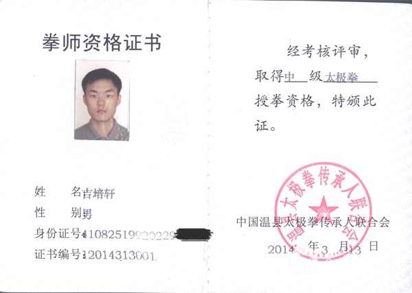 2010年在陈家沟太极拳邀请赛上获男青二等奖,同年在温县分馆开始教拳。