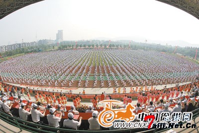昨天在湖北路体育中心田径场,万余名市民身着白色衣裤排着整齐的队伍统一表演了24式简化太极拳,徐州市迎奥运体育节由此拉开帷幕。 为喜迎2008年北京奥运会,唱响“全民健身与奥运同行”主题,促进我市体育事业蓬勃发展,由市政府主办、市 体育局承办的徐州市迎奥运体育节开幕式暨万人太极拳大展示活动昨日在湖北路体育中心田径场举行。 这次活动以市体育中心田径场为主会场,以六县(市)为分会场,以来自万余名社会各界群众统一表演24式简化太极拳的方式,表现徐州人民喜迎奥运的心情,展示徐州“体育之乡”、“武术之乡”的风采。这也是我市历史上规模最大的太极拳集中展示活动。活动有关负责人说,有很多刚学会简化太极拳的年轻人也纷纷要求参加此次表演。