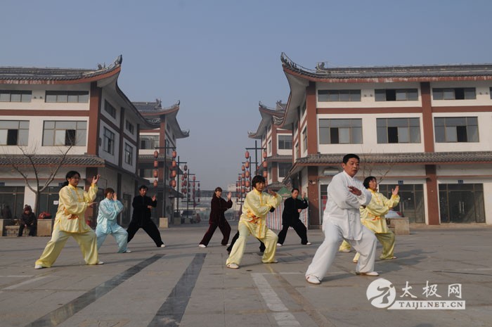胡继军拳姿 2002年,他如愿拜凌志安为师,2010年又成了田秋田的徒弟。在两位恩师的悉心教导下,这位自幼有着功夫情结的农家儿郎,终于成了享誉一方的陈式太极拳第十二代传人。 胡继军教拳,时间已久,上世纪九十年代就有追随者。按照胡继军的话说,他是边学边教的。太极拳是一门永学不完的学问,尽管胡继军现在小有名气,但他仍在不停地学。 他经常到全国各地参加太极拳的交流活动,并不断到太极拳的发源地陈家沟进行深造,有时甚至带上四五十人。 洋河陈式太极拳协会,是他2012年创办的。这是他传授太极拳的一个新起点。那时,向他学习太极拳的人越来越多,受其影响的多达上千人。队伍扩大了,就需要一个团体合力,需要规范地进行传拳活动,于是,注册“宿迁市洋河陈式太极拳协会”,自然是与时俱进之举。  协会会员在胡继军带领下练拳