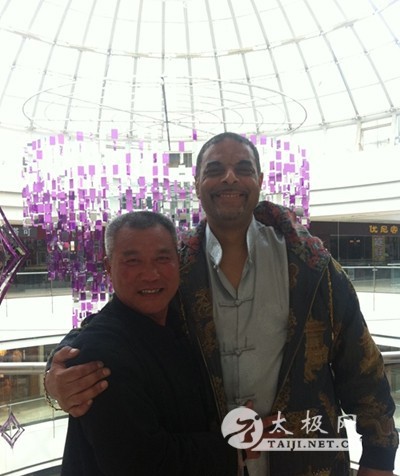 太极张春运折服英国散打冠军 两人亲密合影 交流是在友好的气氛中进行的,同时参加交流的还有跆拳道的人员。张春运首先和安东尼交手,1.72米的张春运面对1.95米的安东尼,毫无惧色,靠练就的一身功夫,使安东尼难以撼动。气喘吁吁的安东尼对这位“小个子”对手的功夫大加称道,说:中国的传统功夫了不起,真好。表示有机会一定邀请张春运到英国去进行交流展示。 |