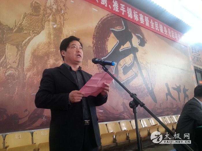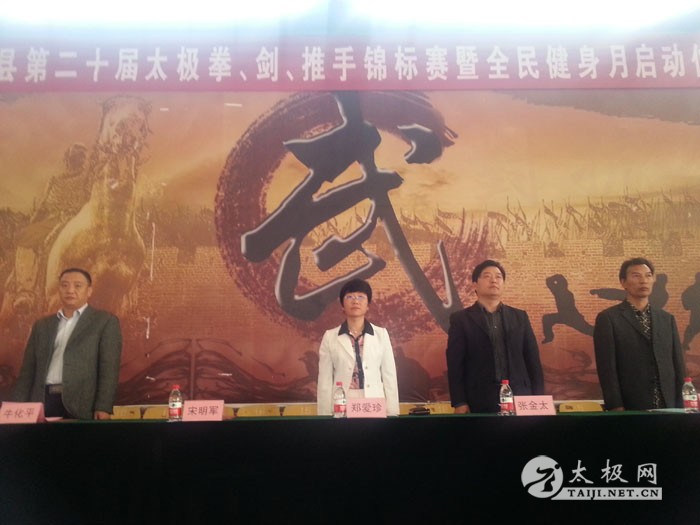 太极网消息:上午8时,温县第二十届太极拳、剑、推手锦标赛暨全民健身月开幕!温县人民政府副县长张金太致辞,县委常委、统战部长郑爱珍宣布活动开幕,体育局长宋明军主持开幕式。