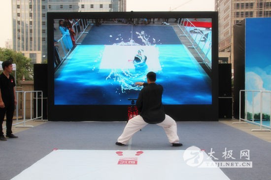 “哇,太极宗师穿越了!简直是魔幻大片啊!”6月7日,在武汉汉街的汉秀超感互动体验会现场,一位一袭白衣的老者面对着大屏幕连续使出“白鹤亮翅”,“右揽雀尾”等经典太极动作,动静开合间,刚柔快慢,顺逆缠绕,忽隐忽现,虚虚实实。屏幕中水花四溅,水球翻滚,俨然一部莱坞的特效大片,神奇一幕令围观市民惊叹不已。 太极宗师玩互动 魔幻云手亮相