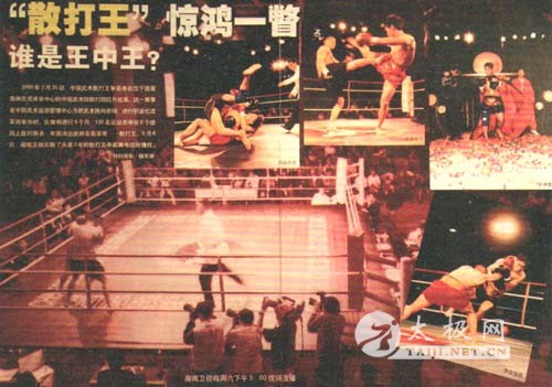 8月8日,第四届中国功夫-泰国职业泰拳争霸赛在泰国首都曼谷举行,中国以3:2客场获胜。 10月18~27日,第五届全国城市运动会上武术套路比赛首次成为26个竞赛项目中唯一的非奥运会竞赛项目。 11月2日至7日,第七届世界武术锦标赛在中国澳门举行,女子散打首次列为比赛项目。 二○○四年