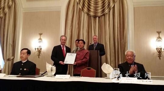 2014年7月6日晚上(美国时间),第二届国际太极拳论坛在美国肯塔基州隆重举行。太极拳各门派代表人物与400余名太极拳爱好者从美国、中国、澳洲、墨西哥、阿根廷、英国、法国等地汇聚到美国中东部,共赴这一太极盛宴。 陈氏太极第11代嫡宗传人陈正雷老师在陈斌和陈娟的陪同下代表陈氏太极拳出席了本次论坛,并与杨、武、吴、孙等五大流派代表人杨军、钟振山、马海龙、孙永田四位老师以及中国武术协会常委康戈武先生一道被授予“肯塔基上校奖”,这是肯塔基州的最高荣誉,由路易维尔市市长颁发证书,美国国会议员、斯波尔丁大学校长等纷纷到场祝贺。 作为中华传统文化的传承人和传播太极健康生活的使者,陈正雷老师一生以“弘扬太极文化,造福人类健康”为宗旨,四十余年来呕心沥血奔波于海内外传播国术家学。陈老师获奖后表示,这个奖曾经颁发给拳王阿里、中国工程院院士陈清如等名人,我能获得这个奖不是因为我个人做了什么,是因为中国太极拳切切实实给全世界人民带来了健康与和谐,也希望被美国学者称为“最完美运动”的太极拳今后能够继续造福中美各国百姓,为中美人民架起一座文化交流和友谊沟通的桥梁。 |