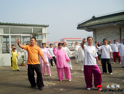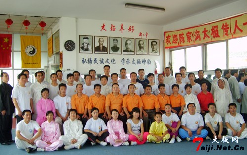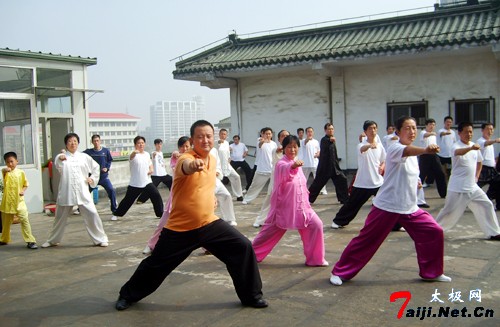 陈冲老师在授拳 与中华太极拳馆教练合影(左起:朱孝荣、沈博平、王兴明、李中华馆长、崔学文、宋宪起) 与全体学员合影