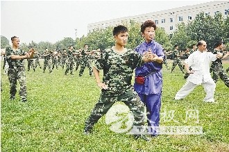昨日下午,郑州市武术协会下属的郑东新区武术工作委员会15名社会体育指导员和拳师走进武警河南总队直属支队,向这里的官兵手把手传授太极拳。 据了解,此次市武术协会“庆八一”送太极拳进军营活动,是武术活动进学校、进社区、进乡镇、进企业、进机关、进军营“六进”之一。活动中,15名社会体育指导员和拳师,对武警河南总队直属支队近200名官兵进行了专门指导。 活动现场,闷热的天气使前来为部队官兵进行指导的老师们汗流浃背,但是他们仍旧坚持为战士们进行手把手指导,每一个动作,每一个眼神都严格要求做到位。“送武术进军营,也是我们传承武术文化的一部分,让部队官兵学习中华传统文化,也能增加他们团队战斗力。这样的活动以后我们还会持续不断搞下去,让更多的部队官兵学习和了解中国武术。”市武术协会秘书长李菲表示。 除了对现场官兵传授太极拳外,前来培训的老师们还给大家带来了《组合拳》《杨氏拂尘》等精彩的武术表演,赢得了现场官兵的阵阵掌声。“太极拳以柔克刚,而我们平时学习的擒拿格斗则是以刚克刚。虽然两者有所不同,但武术原理是相通的。以后我们也会在训练之余习练太极拳,掌握一种强身健体的技能。”士兵邓柳笑着对记者说。 |