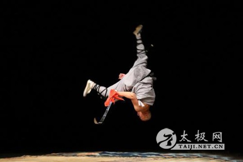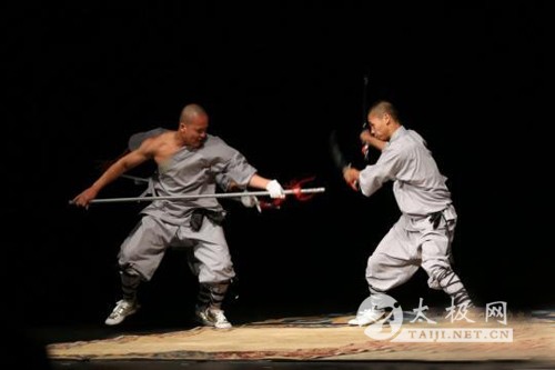 武术高手进行器械对打表演 太极拳第十一代嫡宗传人、河南省陈氏太极拳协会执行主席陈正雷讲解太极拳的发展历史与现状,并做现场演示
