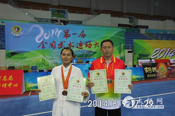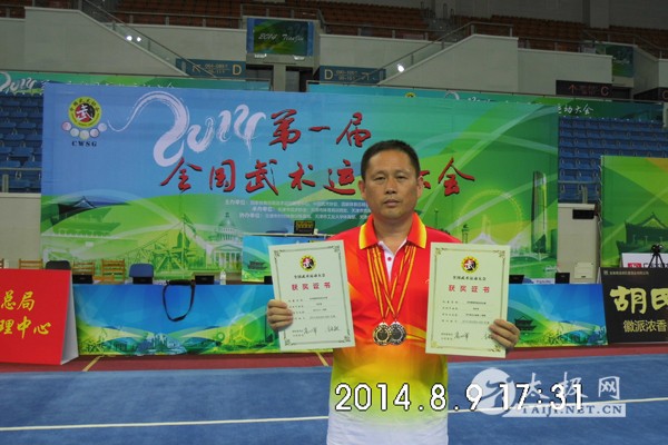 | 喜讯:在刚刚结束的第一届全国武术运动大会中,世清太极拳馆 馆长倪世清和弟子方霞代表安徽省武协获得二金一银一铜成绩,感谢老师,领导,朋友们支持。 全国武术运动大会在中国武术掌门人高小军眼里,这次是真正的由国家来牵头、主导、主办的‘武林大会’,规格、规模、影响力、层次、实际内容和水平都是最好的、最高的、最精的。” |