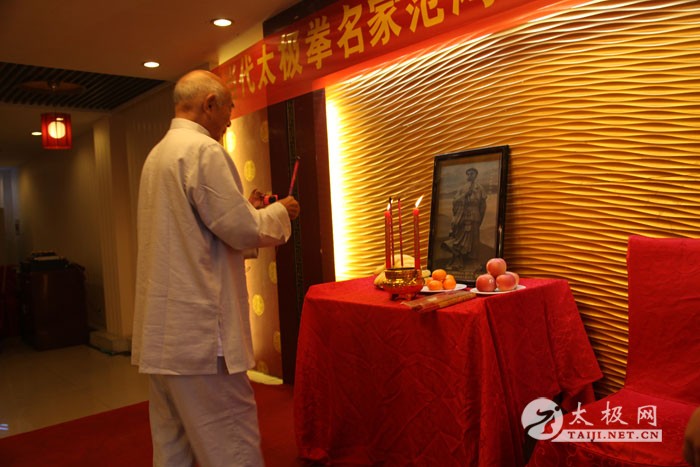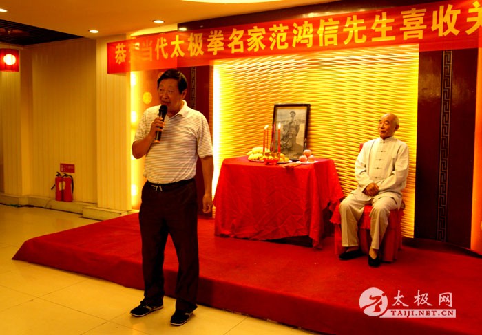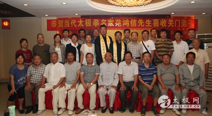 太极网开封消息:八月十三日晚上,八朝古都开封金明池大酒店内,隆重举行了陈式太极拳第十代传人、国际太极拳文化传播大使范鸿信大师收徒仪式。开封市武术协会常务副主席李德祥先生特邀出席。太极网总经理、太极拳传承人联合会主席刘洪奇先生及河南太极国际旅行社总经理张惠芳女士专程赴开封担任主礼。开封网总监韦建永和范鸿信大师的部分弟子出席了本次仪式。范祥林、张纪元两位太极拳爱好者向老师递拜师帖、行叩拜礼,荣幸遂愿地成为范鸿信老师的入室弟子。 刘洪奇先生宣布仪式开始,范鸿信老师首先向太极祖师陈王廷上香行礼,循古制,尊古礼,仪式全程庄严肃穆,两位新入室弟子在缅怀太极始祖的同时虔诚聆听师父的教诲,正式拜入陈式太极门下,彰显了陈式太极的传承和发展的薪火相传,生生不息。 范鸿信大师生于1929年,今年已是86岁高龄,师承于陈式太极拳陈克忠和陈照奎两位宗师。范鸿信大师拳技精湛、武德高尚,德高望重,潜心研究和传承太极拳,河南焦作、开封,福建、甘肃、浙江、广州等地都有他的弟子和再传弟子,可谓桃李满天下。开封市武术协会常务副主席兼秘书长李德祥给予范鸿信老师很高的评价,范鸿信老师在耄耋之年仍能孜孜不倦传播、弘扬太极拳,为开封的武术事业做出了很大贡献,是后辈学习的楷模。 |