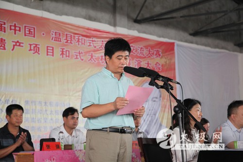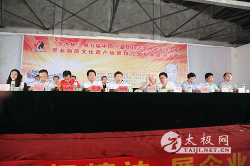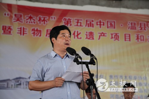 2014年8月22日,“昊杰杯”第五届中国-温县和式太极拳交流大赛暨非物质文化遗产项目和式太极拳展演大会在河南温县职业技术教育中心内举办。 参加此次交流大赛的有来自全国各省地和式太极拳代表队的西安赵堡和式太极拳协会、西安培华学院、永城市和式太极拳协会、四川省和式太极拳研究会、绵阳市青少年活动中心等34支代表队,本次大赛共有400多名和式太极拳的从练者参加。 本次比赛为期三天,比赛项目有和式太极拳传统套路、精要十八式、十三式及器械比赛,段位制单练、对练套路,全国功力大赛项目——桩上徒搏等。 开幕式由温县武术协会主席宋明军主持。出席了本次大赛开幕式的有焦作市太极拳协会会长赵功佩、焦功作市政协副主席和金贵,温县人民政府县长李英杰、副县长张金太,河南大学体育部主任洪浩、西安体育学院武术系主任马文国,《搏击》杂志主编田文波、焦作市群艺馆党组书记聂琨,和式太极拳传承人和有禄等领导和各地嘉宾。 焦作市太极拳协会会长赵功佩宣布大赛开幕后来自全国各地的和式太极拳爱好者表演了他们精心编排的和式太极拳节目,表演结束后比赛正式开始。开幕式结束后本网对和式太极拳领军人物和有禄进行了采访,他表达了对本次大赛的期许并展望了和式太极拳未来发展的蓝图。 太极网记者:杨佳奇 郭雪梅