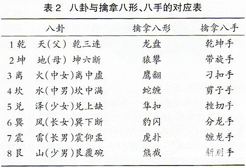 武术进入校园是关乎武术传承,发展武术继承者的大事,它能够促进学生的体质健康,能作为一种培育民族精神的有效手段,加强学生对中华民族文化的认同,加强学生尚武精神的培育。而中国武术中特有的擒拿技术,则凝聚了中华武术实用技击的精髓,集中体现和反映了中华武术的传统文化内涵,能够推动社会主义文化大发展大繁荣。学生学习擒拿强身健体、技击防身的同时更可以接受文化熏陶、修德养性。 擒拿是以击打掐拿要害部位、抓经拿脉、分筋错骨为主要手段,融踢、打、摔、拿为一体,刚柔相济,阴阳互变,周流圆活,以巧取胜的一种实用技击术。擒拿是徒手搏击中最重要的实战技法,其理博大精深,其法奥妙无穷,其术千变万化,是中华武术中一种非常适合进入校园的技击术。 1 文蕴深厚、技理精绝 中国文化数千年的积累和沉淀,是擒拿取之不竭的巨大宝藏。例如,擒拿秘籍《九重天》中的“无极诀”、“两仪诀”、“三才诀”、“四象诀”、“五行诀”、“六合诀”、“七星诀”、“八卦诀”和“九宫诀”,各个口诀都是以中国传统哲理来阐述擒拿的技理,其技理的精绝和文化底蕴的深厚令人叹为观止。 例如,《五行诀》讲的是劲力运用的总的原则,它以五行的特性,来阐述五种劲力(整、透、圆、活、巧)的运用原则,(见表1)。再如,擒拿八形(龙盘、猿攀、鹰翻、蛇缠、隼扣、豹闪、虎扑、熊截)和擒拿八手(乾坤手、带旋手、刁扣手、剪子手、挫切手、分龙手、缠龙手、斩别手)又分别和八卦的理论相合。(见表2) 中国传统文化特别是传统哲学对擒拿产生了深远的影响,擒拿的文化底蕴可以和有着哲拳美誉的太极拳相媲美。学生在学习擒拿的过程中必然受到这些传统哲学的启迪。这种有亲身体验的学习则可以使学生更容易、更鲜明地感受中国传统文化。特别是在国家非常重视提升中国文化软实力的大环境下,这无疑是擒拿成为武术进校园重要内容的巨大优势。 2 内功修身、以德为本 擒拿秘籍《九重天》中的首个口诀——《总诀》中就有“入我门来心宜静,修身养性筋骨坚”的明确表述,可见擒拿对性(德行)命(生命)双修的重视。擒拿还有全面论述武术内功心法的口诀,专门阐述了擒拿的内功心法。擒拿注重对形(体态、行为举止)的塑造;对制内气通盈、五脏六腑得安、却病强体)的培养;对神(感知、认知能力,敏锐的应激反应能力,思想意识、精神品质和道德修养)的修炼。它讲求内外双修,而绝不是单纯的肢体运动或一招一式的身体技术,不能只单纯追求擒拿之“术”,而舍其“道”。通过武术进校园,学生可以在学习擒拿术的过程中对“道”有更贴切的认识和了解。 擒拿对习练者的品德要求更为严格。中华武术传承尤以“武德”为重,而作为武术中的精髓武技——擒拿更是如此。《九宫诀》第一句:“先祖传技法为用,袖里乾坤舞东风”。其寓义是:自己掌握了擒拿技术,千万不能到处炫耀,要谦虚、谦和。最后一段还特别强调:“武以道载,技以德承。艺源于思,功成于勤,术承通变。内外双修,理、技、劲、法相合,乃得大成。”“道”是武术之舟,它承载着武术,没有“道”或不遵道,武术就会因之覆灭而不存。而“德”是中华武术之本源,是研习擒拿技术的基本条件和要求。 在学校开展武术活动必须要上升到道和德的层面上,让学生严格要求自己的行为举止,以谦和的态度为人处世。而擒拿则是从正形、通气、明神等几个方面人手,先提升自己的道德修养。而后才是外功~擒拿技术的学习和修炼。擒拿技术随着内功修为和道德水平的深人而精进,同时外功的修炼推进着内功修为与道德的升华,所以称为内外双修。这样学生的品德修养和擒拿技术就可以一同提高。习而修德,这是擒拿能成为武术进校园重要内容的又一巨大优势。 3 超强实用,安全保险 擒拿技术是由擒——分筋错骨,反挫关节,以及拿——抓经拿脉,掐拿穴位两大部分所组成。擒拿秘籍《九重天》中的《三才——行功诀》中说到:“抓经拿脉消其力,分筋错骨鬼神哀”“分筋错骨”所指的擒技,“抓经拿脉”所指的拿技,两者都是针对人体如:关节、经脉和穴位,还有咽喉、阴部、心口、重要脏腑等薄弱部位设计。这些薄弱点都是难以承受打击与掐拿的部位,一经击打或掐拿必使对方酸疼难忍,从而削弱或使其失去抵抗能力。正是由于擒拿技术攻其要害的特点,擒拿的实用性超强,才有“擒拿法之妙,技击法之冠”的说法。擒拿成为我国军警格斗技术体系的主力技法,就是擒拿实用性强的明证。 另外,除了生死攸关的对敌格斗,擒拿多不以杀伤对手为主要目的,而是以制服对手为第一要务,是一种不伤害而能制敌的高超技能。擒拿技术多采用缠、滚、挫、绕等以柔为主的手法。这种以擒服为目的的技法,在学校中推广不会有受伤率高的担心。由此也可以看出它充分体现着中华武术“止戈为武”和“以巧制拙,以柔克刚”的文化内涵。 4 内容丰富,动静结合 擒拿技术内容非常丰富,有健身增力的基本功法,有柔缓似太极的单练套路,还有招招制敌的对练套路,有与踢、打、摔相互组合的攻防单操,更有适合女性防身的一招制敌,还有能擒杀匪徒空手夺凶器的实战技法。 擒拿的养身、健身功法更适合年纪稍大,或者体质不好的人群;擒拿基本功是基础,应该在中小学成为重点;擒拿套路是类似太极拳的