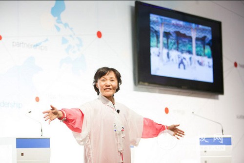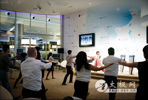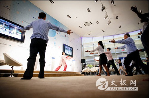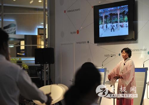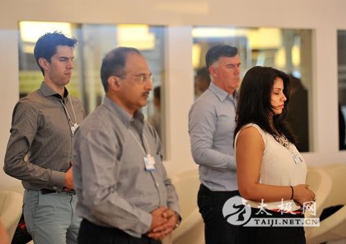 费伊·伊普(Faye Yip)在带领与会者练太极 9月10日,前来天津出席夏季达沃斯论坛的英国德印太极拳协会的太极大师费伊·伊普(Faye Yip),带领与会者一起练太极,分享太极带给人们的益处。(夏季达沃斯论坛,这个被称为“新领军者年会” 的论坛,是 “全球成长型公司”共同规划未来工商业发展远景的互动平台,成长型企业家是年会主要参加者。) 与会者在体验太极冥想 |