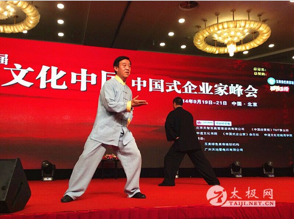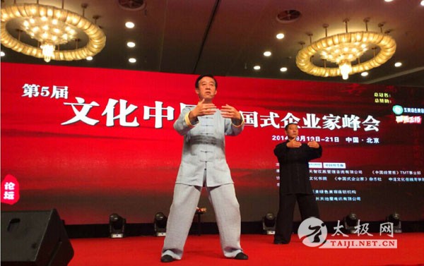 2014年9月19日上午九时,由天智教育训练机构主办的第五届文化中国——中国式企业家峰会于北京九华山庄盛大启幕。 在中国人传统的养生观念里,天地自然一切事物的健康与发展,都应保持阴阳平衡。太极拳就是包含阴阳学说之理和养生之道的这样一项促进人体身心健康的武术运动。在第五届文化中国的会场,诚挚的邀请到了陈氏太极拳第十一代传人——陈正雷大师。 在陈正雷大师演讲之初,他的入室弟子赵先生伴着悠远清扬的古曲为与会企业家呈现了一场太极拳术的演示,他将陈氏太极拳开合自然,以柔克刚,上下相随的精髓以行云流水的走势进行了完美的展示,仿佛带领大家步入一个宁静自然,充满古朴意蕴的太极世界。 关于被称为“运动处方,活体医药”的太极运动,在国内甚至是国际都获得高度认可。陈正雷大师作为陈氏太极的传人,一直致力于太极养生事业的传播与推广。他在演讲中分享太极拳的命名与其发展的发展脉络,介绍太极拳中阴阳学说融合的意蕴和对人体健康的养生之理。与此同时,为了让与会企业家更好的体察会悟太极拳这项运动,陈大师还在现场进行了演示和教学,会场内全员参与,从调节呼吸节奏到体态姿势的演变和调整,用简化的太极教学带领与会企业家更加深刻的理解和感悟太极拳及其背后深厚的历史底蕴。更借此号召企业家们养成在繁忙的工作之余勿忘健康养生的绿色生活方式。 |