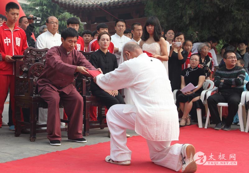 金秋时节、丹桂飘香、景色宜人,陈家沟陈氏太极拳大师、陈家沟太极拳“八大天王”之一、陈家沟国际太极院院长陈炳先生收徒仪式在温县陈家沟太极拳祖祠隆重举行;温县人民政府副县长张金太等应邀参加陈炳老师的收徒仪式。陈炳老师首先在陈王廷铜像前敬香祭酒,祭拜太极拳先祖;在众嘉宾的见证下,来自美国、韩国、俄罗斯、智利、瑞士、江西、北京、上海等地的57名太极拳爱好者虔诚地叩拜在陈炳老师面前,分别递交了拜师帖,陈炳老师向弟子回帖,57名弟子正式成为陈氏太极拳传人;各界领导、武术界人士百余人齐聚一堂,共同庆祝陈炳老师喜收新徒。 陈炳6岁随叔父陈小旺、陈小星习练家传拳械,1983年进入陈家沟太极拳学校学习,1991年-1996年任该校太极拳辅导员,1997年考入上海体育学院武术系,研读人体科学、运动理论及武术专业知识。2004年获得中国国际武术推广中心武术教授职称。 多次应邀出席韩国“世界文化节”和美国俄亥俄州首府举办的“亚洲文化节”。陈炳在二十余年的实践教学过程中,其德艺双馨的道德品行得到了武术界的认可和高度评价。并培育了不少武术人才,今天在太极拳祖祠内举行收徒仪式,就是让国外的弟子更能感受到中国传统文化的浓厚历史氛围,将一身精湛的武艺广传给大家,共同发扬光大太极拳。 新入门的弟子有跟随陈炳老师左右多年的学生,更有国外的弟子,都是经过严格考验,人品得到认可,其中不乏有在武术上小有成就者,武术比赛上摘金夺银者,还有很多国外弟子已经开始教授学生。新入门弟子王东代表弟子发言,他激动的说,“幸遇恩师,让自己在探索太极拳的道路上少走了许多弯路,陈老师无论拳艺和人品都是我们的目标和学习的楷模,今天如愿以偿拜入陈炳老师门下,了却夙愿,以后定担当起传承发展太极拳的重任,以良好的道德品行教授他人。” 拜师名单如下:陈志峰、费鼎杰、胡韶文、王忠明、黄兆柏、潘忠明、马俊敏、曹炯、胡胜燕、黄秋溅、陈栋、郭建、任攀峰、叶宗翰、张朋、华梓尧、刘杰、李建军、郭崇裕、王良彬、朱华强、党前进、仉永顺、王延伟、刘世龙、姚闻达、朱佳楠、芭芭拉、奥贝图、伊丽娜、佐藤弘雄、拉达、周俊芳、赵智勇、尹子谦、段合贵、王震宇、刘昕、酒香子、孟祥龙、高洪端、刘宗楠、路晓亮、潘英杰、朱飞、刘伟伟、申典雅、潘晓、邱林、胡世民、孙常琴、王冬、闫智伟、吴淼、陈铮、许方晴, 刘保忠。 |