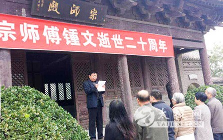 2014年10月12日,在傅声远大师的带领下、在河北邯郸永年各界领导的关心下、同时在杨家太极第五代掌门杨志芳大师的参与下,纪念太极宗师傅钟文逝世二十周年大会在宗师陵寝河北永年县广府隆重举行。 纪念活动由邯郸太极拳友会会长杨清波先生主祭,在冀众师门、拳友以及各界来宾二百多人参加祭奠,尊师重道,忠义德仁,弘扬太极,后继有人。 |