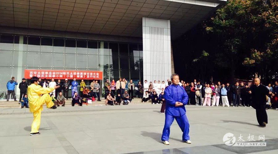暨《陈氏太极拳小架(小圈)精要》发行仪式 活动由陕西省武协副秘书长、西安市武协副主席、西安太极拳总会副会长兼秘书长刘永强主持。 西安市武协主席陈振虎在致辞中首先对此次活动的顺利举行表示热烈的祝贺,并对西安目前太极拳蓬勃发展的局面感到欣喜,体现了人民生活水平的提高。他希望西安市的各太极拳组织今后要更多地加强交流,提升理论研究水平和技艺,并向太极传人职汝磊先生《陈氏太极拳小架(小圈)精要》一书的出版表示祝贺!中国国际太极拳网站总编原福全也在发言中对西安太极拳近年来的发展给予了高度肯定,并希望这样的交流活动经常举办。西安市武协常务副主席方秀敏还为活动赠送了“弘扬太极,造福天下”的字幅,另外在仪式上还重点介绍了《陈氏太极拳小架(小圈)精要》一书的结构及特点,是近年来少有的高质量太极拳著作。